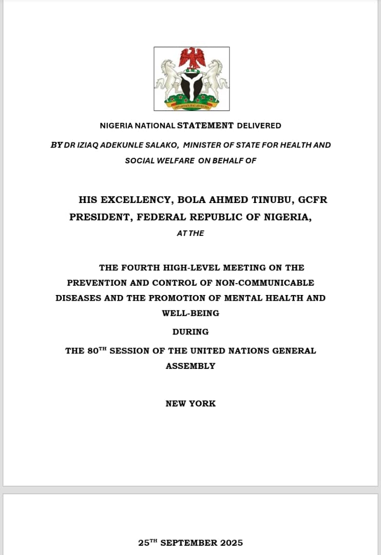 “Nigeria is committed to building on our progress: strengthening our health systems, prioritizing prevention, and ensuring mental health receives the prominence it deserves within our national agenda. With global solidarity, shared best practices, and renewed investments, we can reduce premature mortality from NCDs by 2030 and promote mental health and well-being for all”, Tinubu concluded.